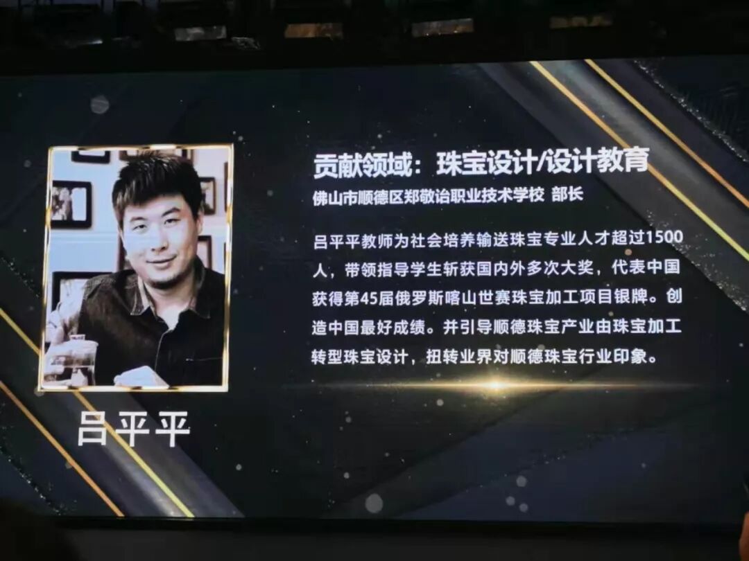商会副会长单位顺德区郑敬诒职业技术学校吕平平老师过五关斩六将获得2019设计顺德行业贡献奖,商会送上衷心祝贺并感谢吕老师为珠宝行业培养人才而做出的杰出贡献。